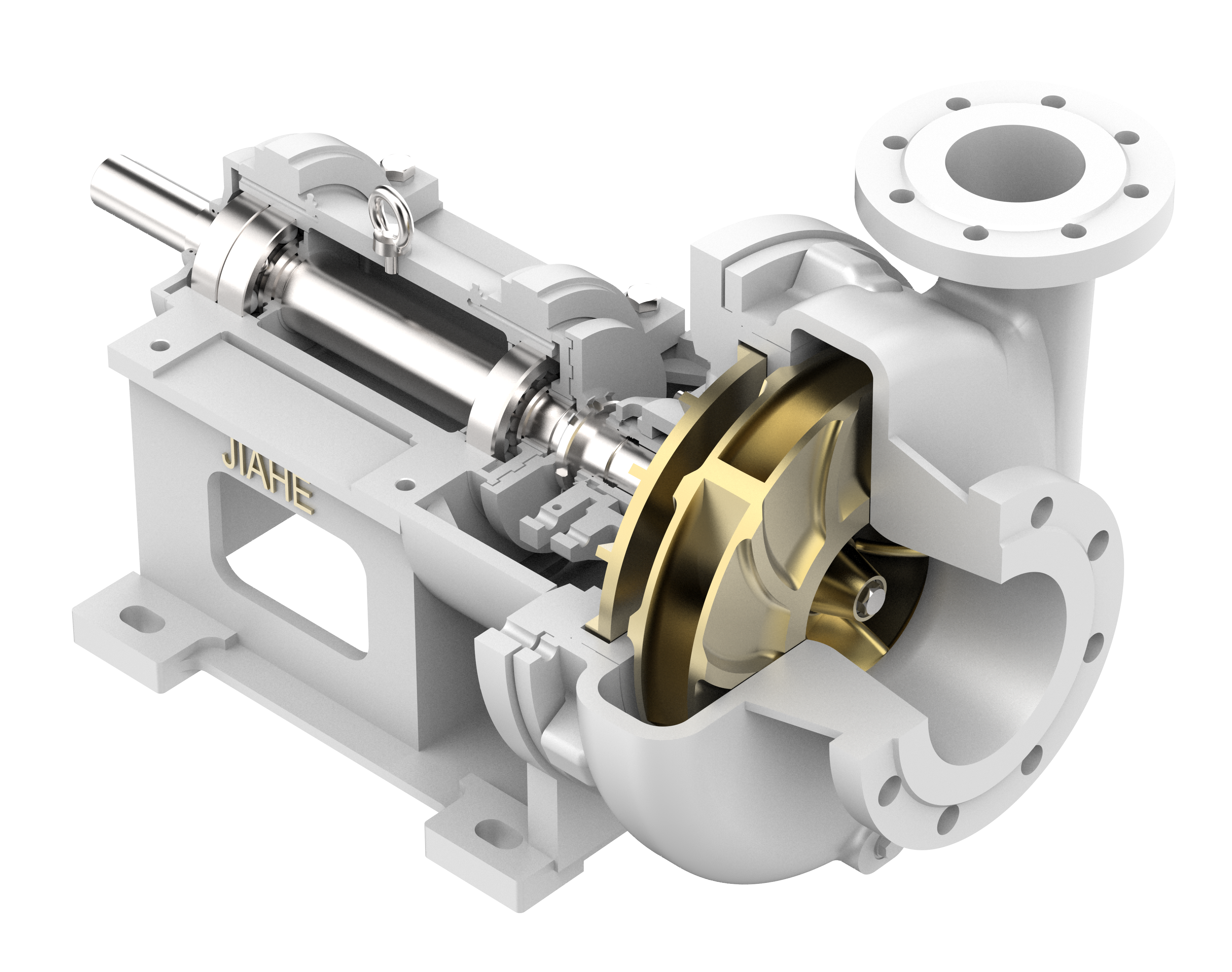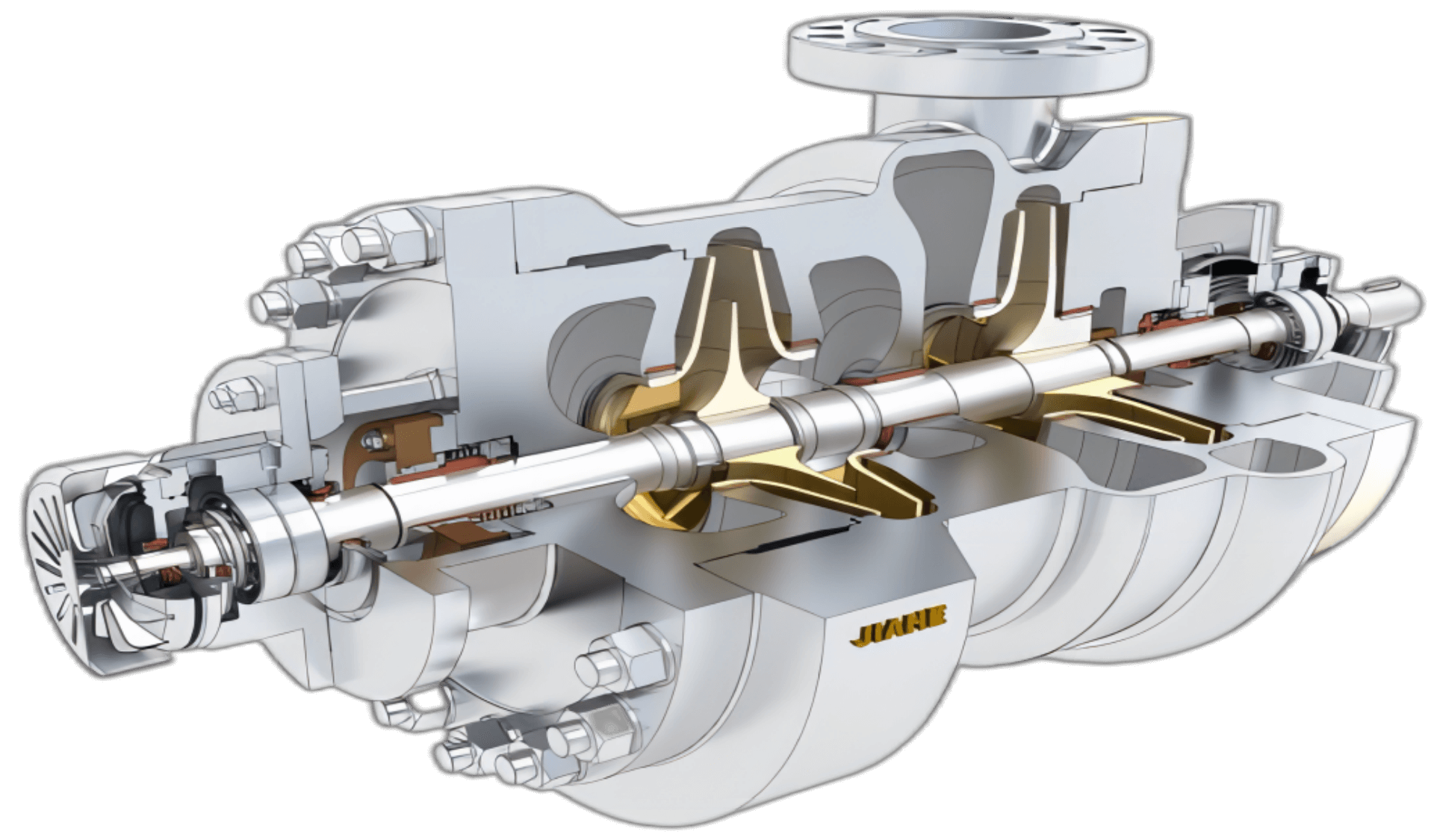 JHBB/JHBD泵(BB2)為兩級(jí)、徑向剖分兩端支承離心泵。符合API610-11th標(biāo)準(zhǔn)。JHBB為首級(jí)單吸,JHBD為首級(jí)雙吸。進(jìn)出口法蘭尺寸滿足ANSI或ISO標(biāo)準(zhǔn)。密封腔的設(shè)計(jì)符合ISO21...